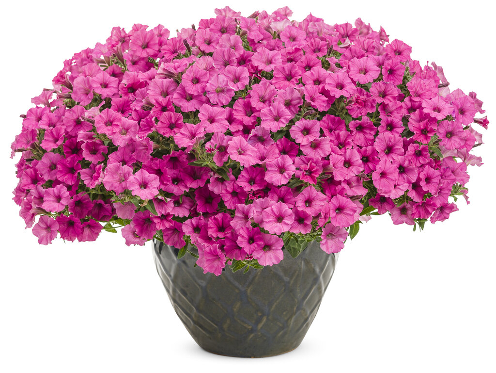 Supertunia Mini Vista Hot Pink în ghiveci C5 este o petunie curgătoare cu flori roz aprins, ideală pentru jardiniere, ghivece și grădini. Compactă, viguroasă și cu înflorire abundentă pe tot sezonul, oferind un impact vizual puternic.