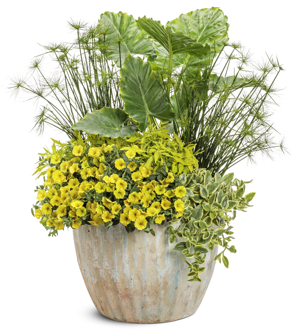 Supertunia Mini Vista Yellow în ghiveci C5 este o petunie curgătoare cu flori galbene intense, ideală pentru jardiniere, ghivece și grădini. Compactă, viguroasă și cu înflorire continuă pe tot sezonul, oferă un impact vizual puternic.